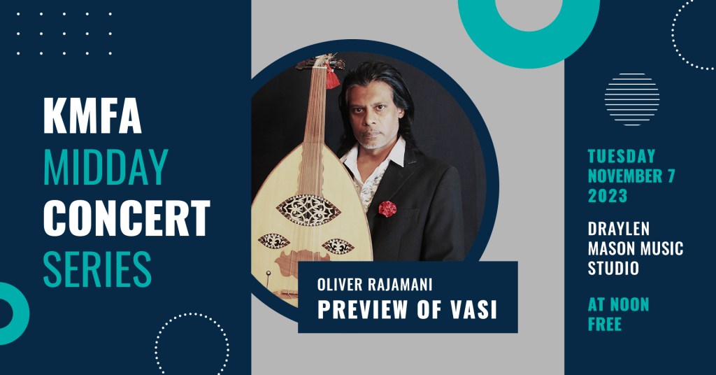 Rajamani will play a few songs from album VASI with an interview & live audience at KMFA Live studio. KMFA Austin Classical Radio’s new, beautiful and acoustically sound venue by the Colorado river.