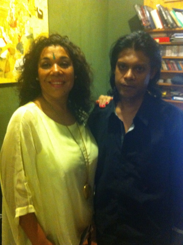Featured artists- Slide Steel guitarist Cindy Cashdollar and Texas musician Carolyn Wonderland-backstage right before going on stage to perform with Rajamani -2012