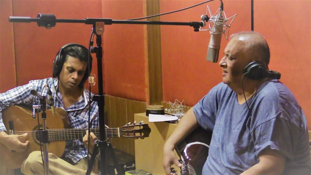 With Sitar legend Ustad Shujaat Khan during the recording of “Flamenco India”-2017